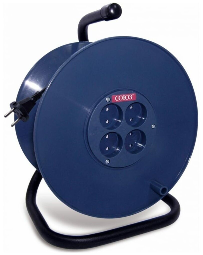 Купить Удлинитель силовой на пластиковой катушке ТМ Союз с 4 гнезда без заземляющих контактов 4000 Вт ПВС 2