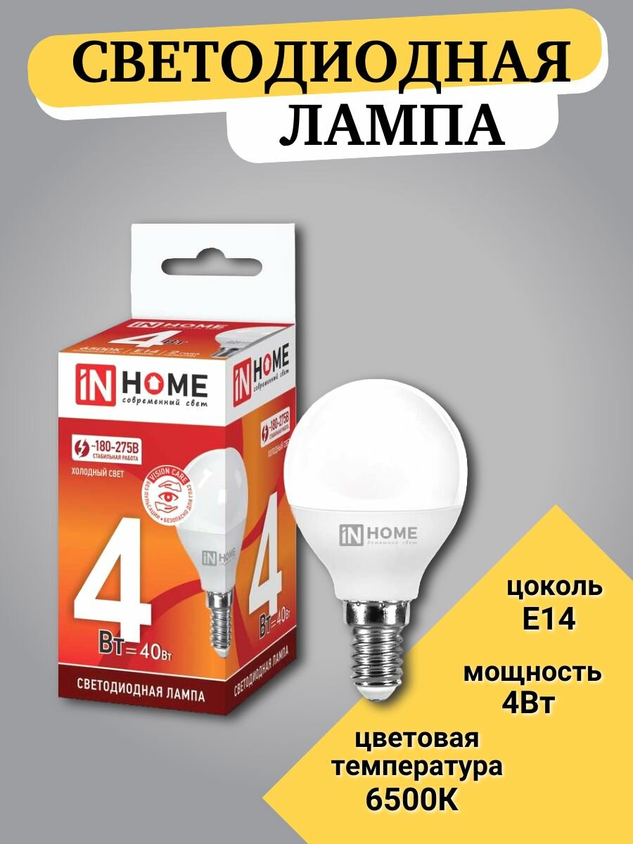 Светодиодная лампа IN HOME LED-ШАР-VC 4Вт 230В Е14 6500К 360Лм 4690612030555
