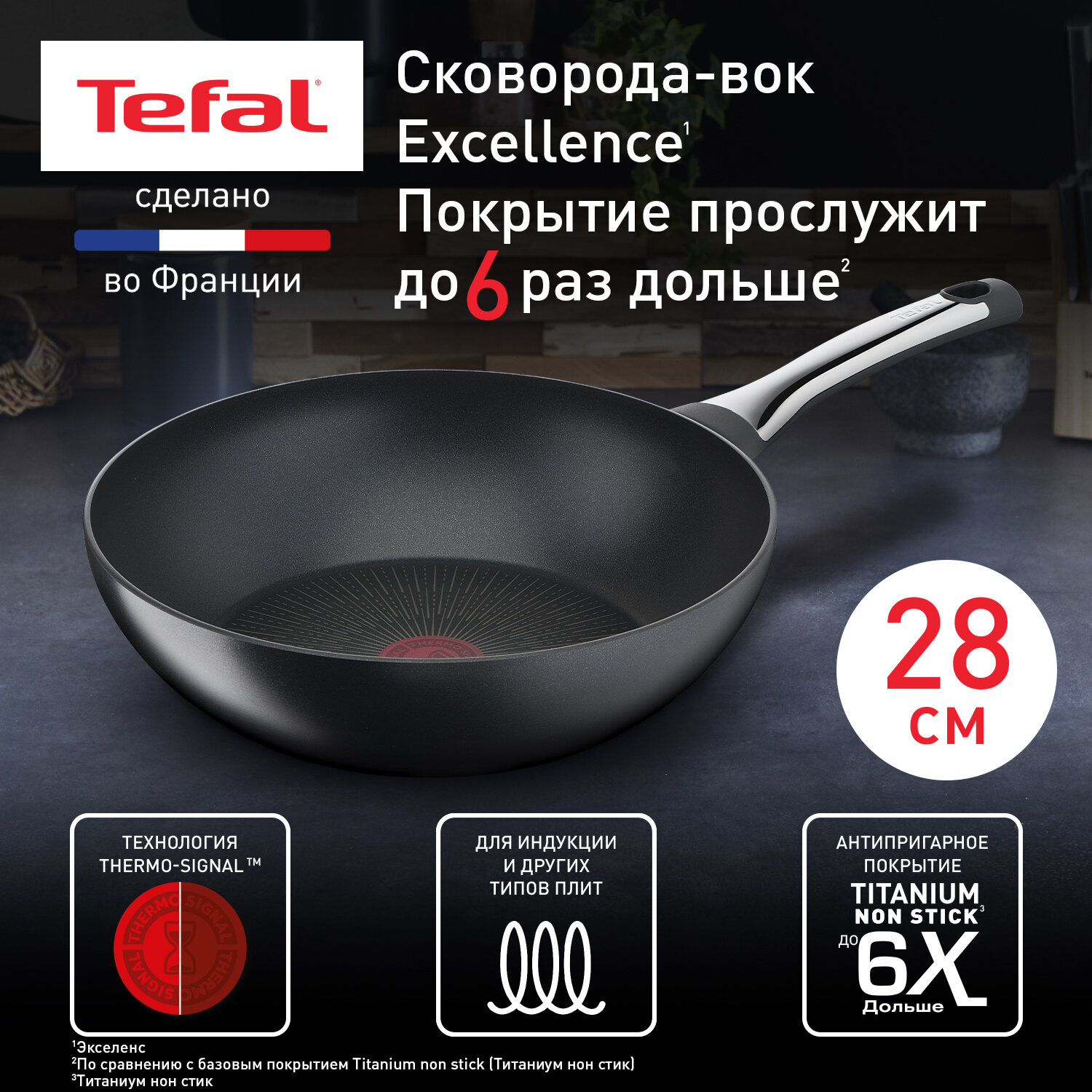 Сковорода вок Tefal Excellence G2691972, 28 см, глубокая, подходит для индукции, сделано во Франции