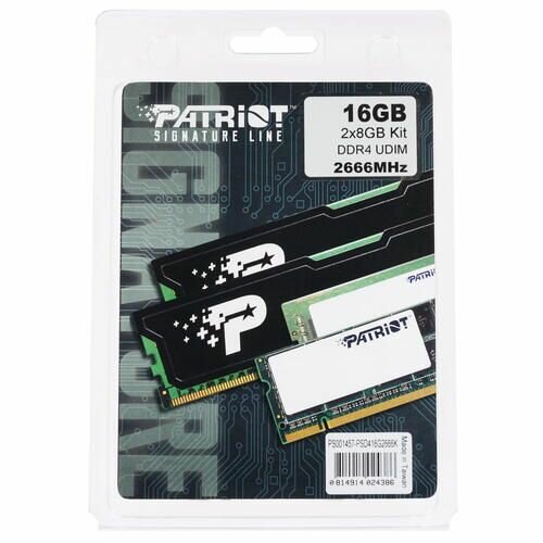 Оперативная память Patriot PSD416G2666K /8GB / PC4-21300 DDR4 UDIMM-2666MHz DIMM/в комплекте 2 модуля