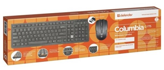 Набор беспроводной DEFENDER Columbia C-775RU, USB, клавиатура, мышь 3 кнопки + 1 колесо-кнопка, черный