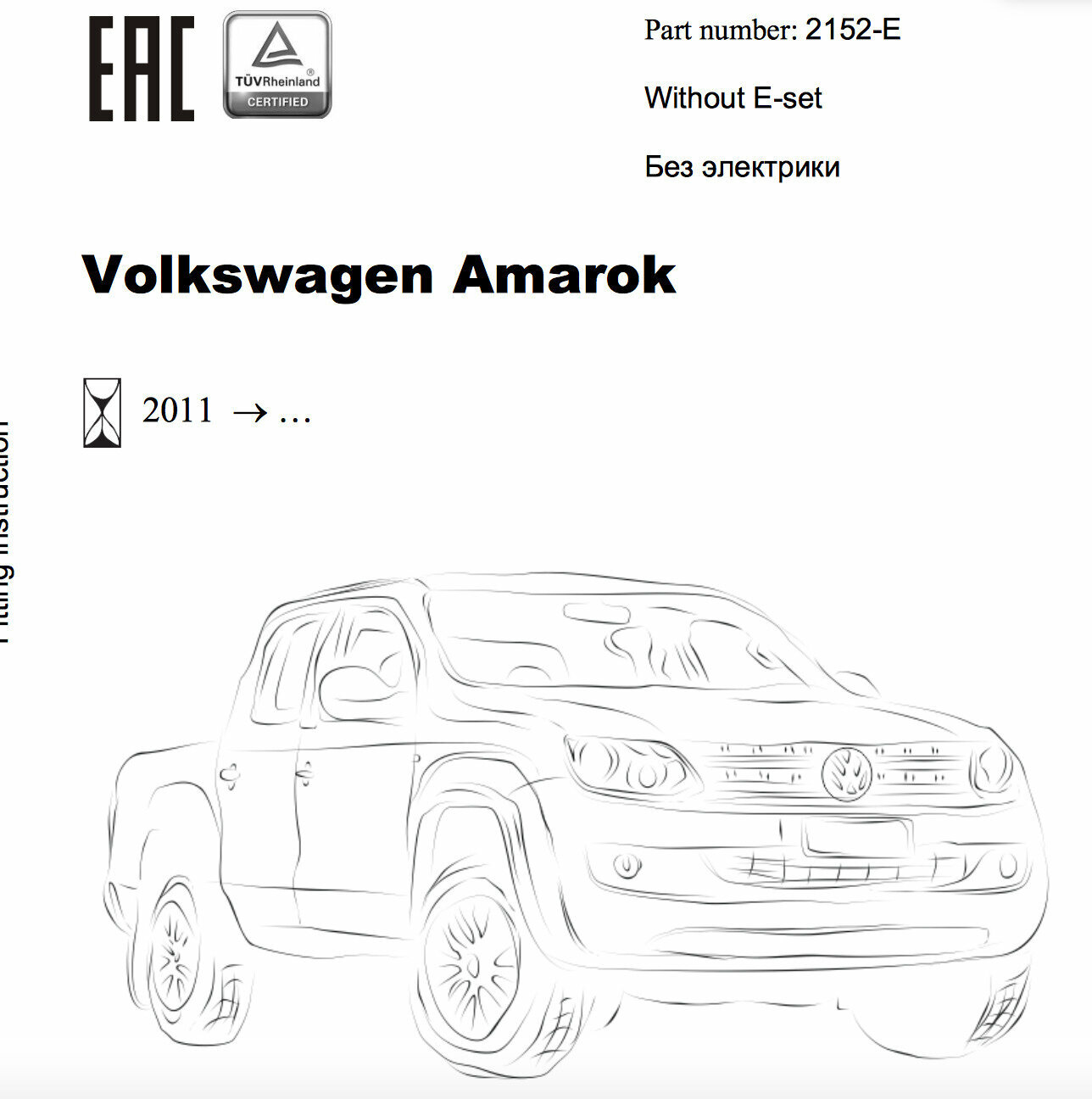 | Дополнительная информация | VW Amarok с бампером 2010-, без электрики |