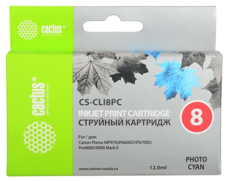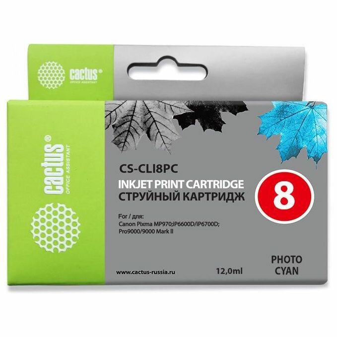 Картридж струйный Cactus CS-CLI8PC светло-голубой (12мл) для Canon Pixma iP6600/iP6600d/iP6700/iP6700d/MP960/MP970/PRO 9000