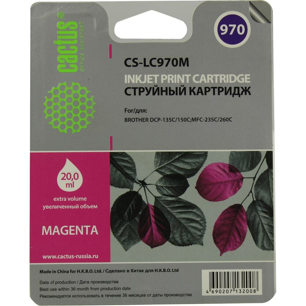 Струйный картридж Cactus CS-LC970M пурпурный для Brother MFC-260c/235c/DCP-150c/135c (20мл)