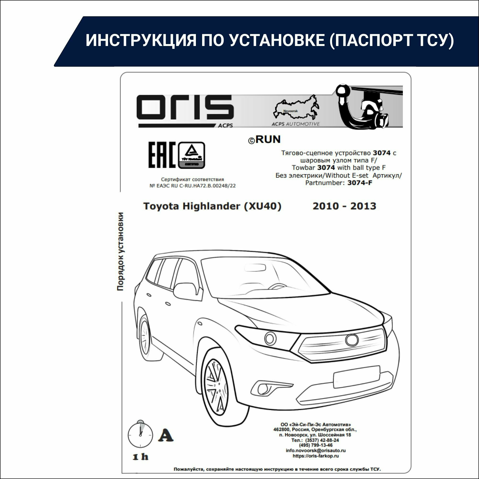 Фаркоп (ТСУ) на Toyota, Highlander, 2007-2013, ORIS интересное: