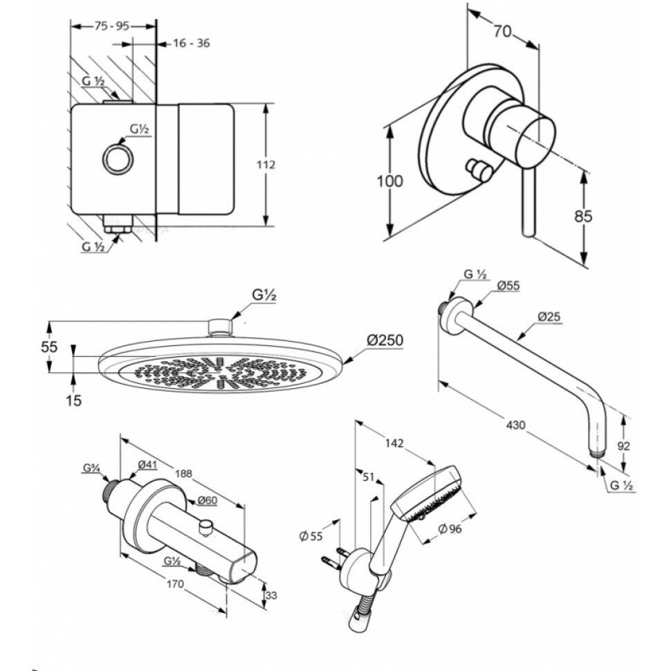 | Комплектация | встраиваемый смеситель для ванны и душа 387160576 / внутренняя часть 38624N / кронштейн для душа L = 400 мм 6651405-00 / верхний душ / ? 200 мм 6651005-00 / душевая лейка с держателем и шлангом 3S 6803005-00 / соединение для шланга с настенным излив с дивертором 1350105 / душевой шланг 1250 мм 6100405-00 |