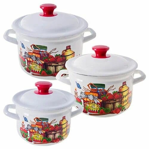 Набор эмалированной посуды 6 предметов, кастрюли 2,3,4 л, Керченский металлургический завод, Деревенский-1