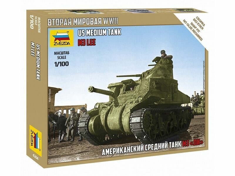 Модель для сборки Звезда (ZVEZDA) Танк Средний американский M3 "Ли", масштаб 1:100 (6264)