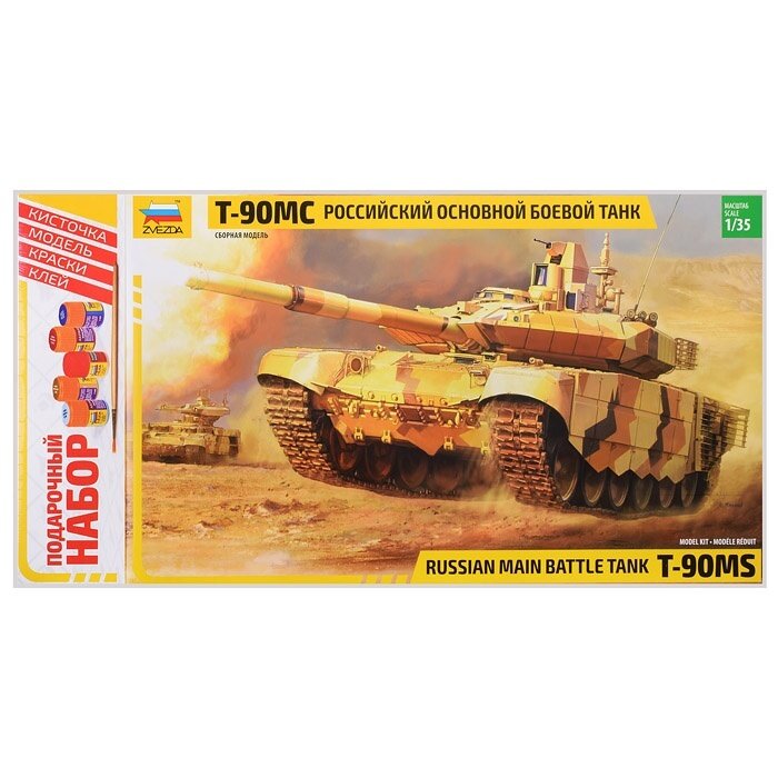 Сборная модель ZVEZDA "Российский основной боевой танк Т-90МС" 1:35, подарочный набор, арт. 3675ПН