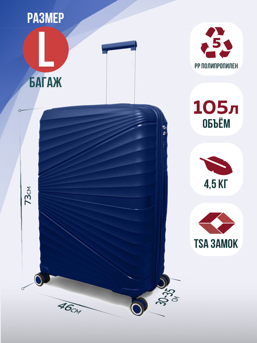 СохранитьУдаропрочный чемодан из полипропилена с расширением размер 9002L-Темно-синий интересное: