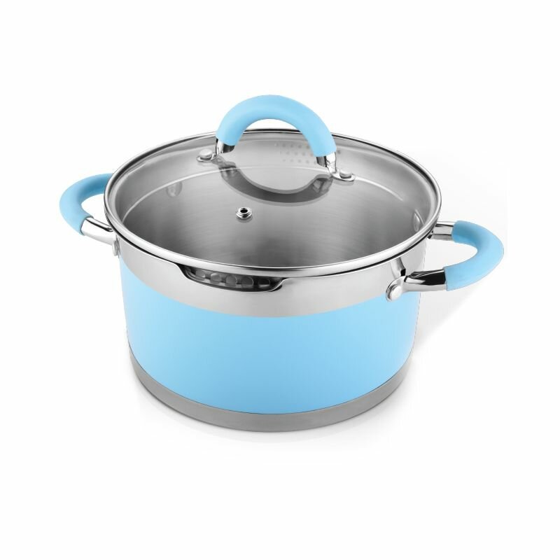 Кастрюля Lara Lr02-442 Sky Blue 11X20см, 3,1Л, Стал.ручки, Капсул Индук Дно, Слив Крышка LARA арт. LR02442