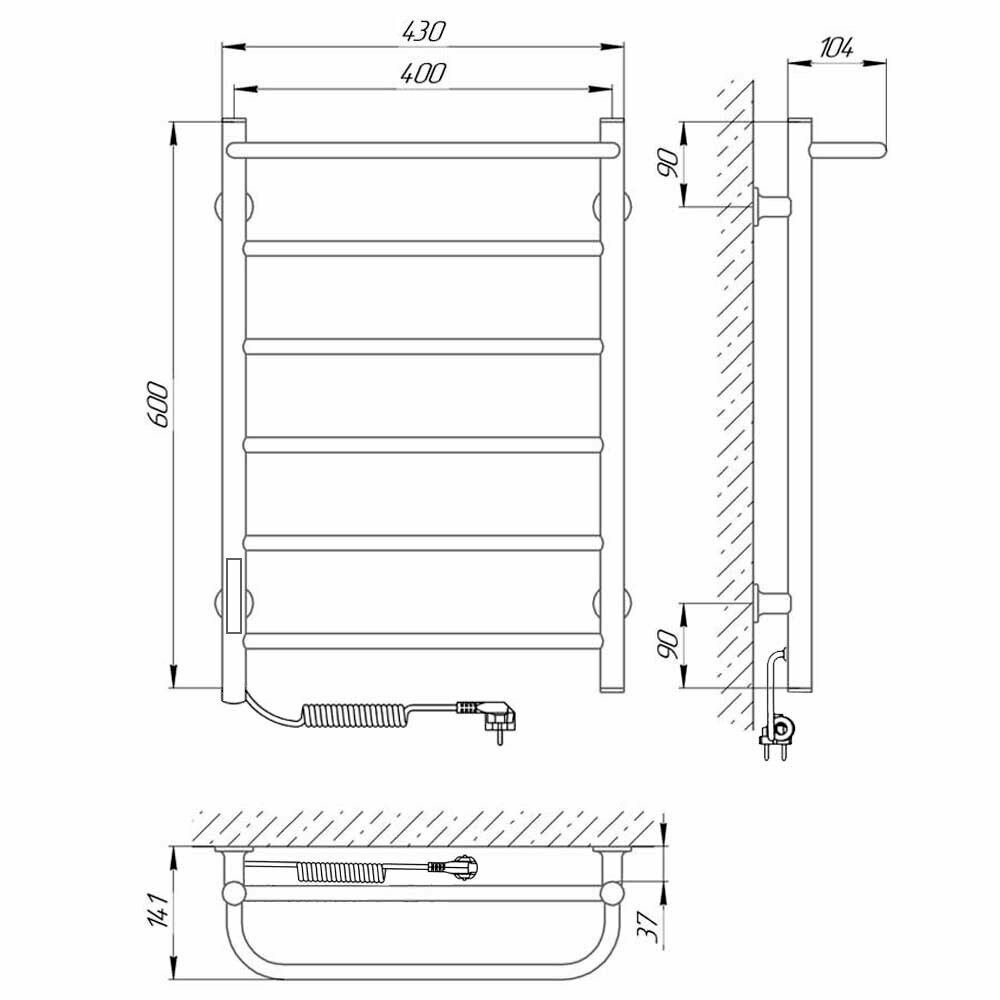 Полотенцесушитель электрический 600x430 диммер слева Laris Прайм П6 73207647