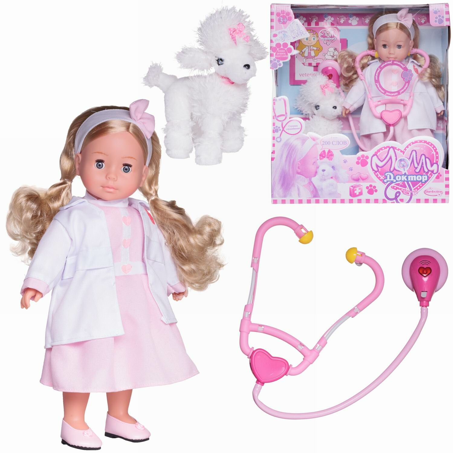 Купить Кукла DIMIAN Molly Доктор со стетоскопом и собачкой, говорит 200 слов, частично мягконабивная, 40 см BD1384RU-M37