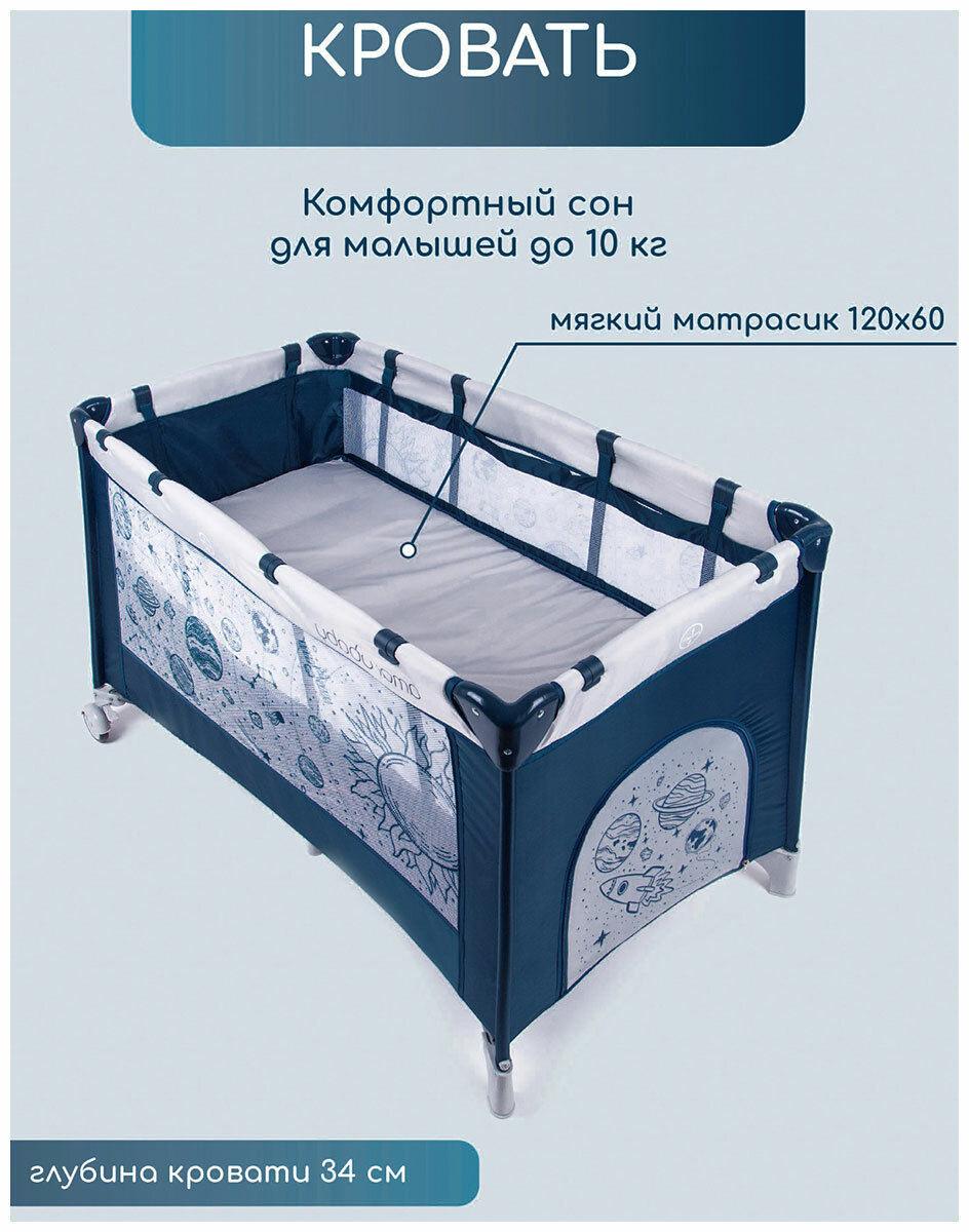 Купить Кровать-манеж Amarobaby MULTIFORM Space синий (AMARO-26MSP-Si)