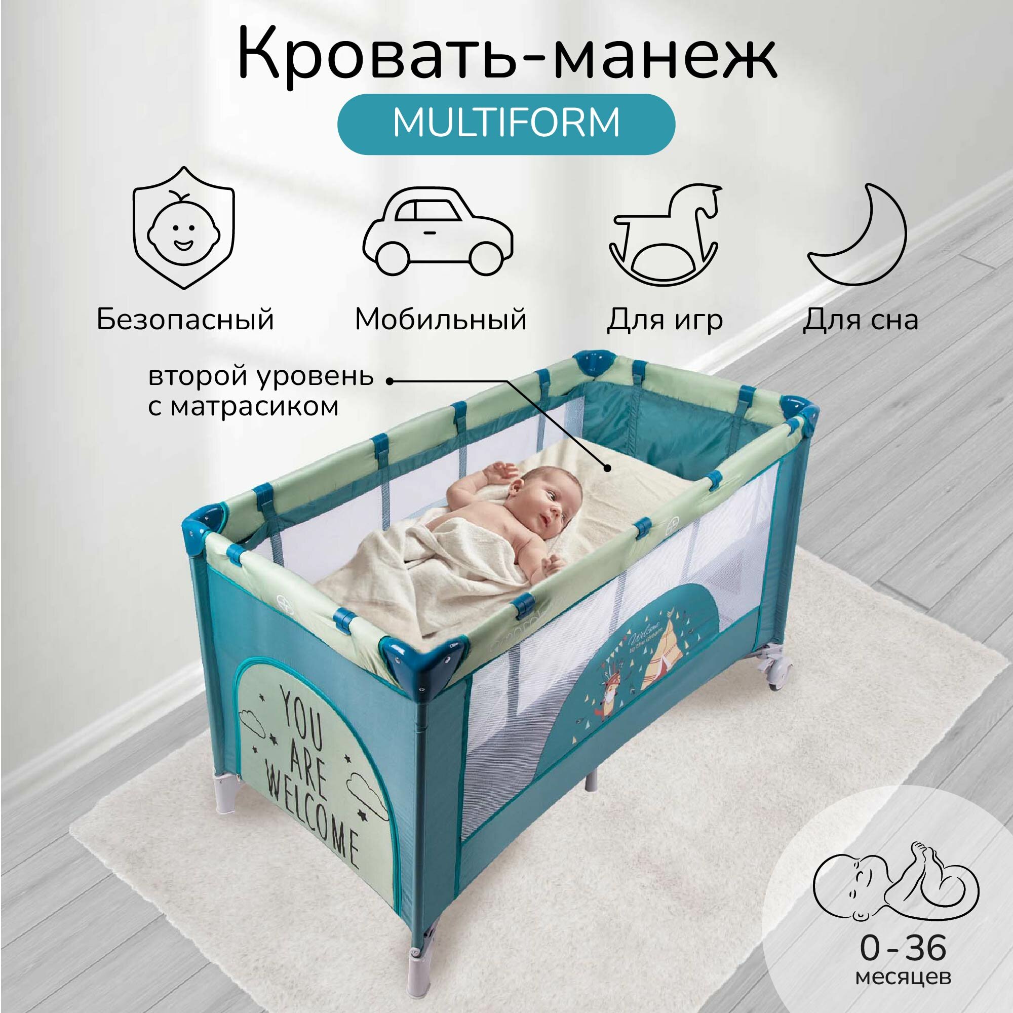 Кровать-манеж Amarobaby MULTIFORM Safari зеленый (AMARO-26MSA-Ze)
