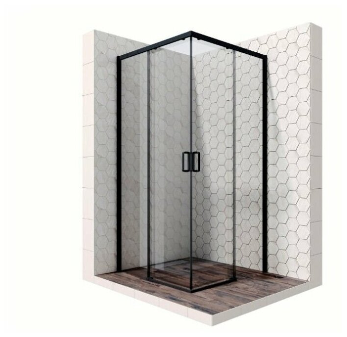Душевой уголок 90х90 см с раздвижными дверями Ambassador Queen Black 11011203: душевое ограждение из стекла 6 мм, профиль черный