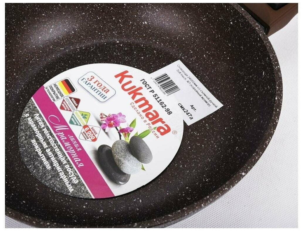 Сковорода 24см Kukmara Кукмара со съемной ручкой soft touch Антипригарное покрытие Кофейный мрамор смк247а интересное: