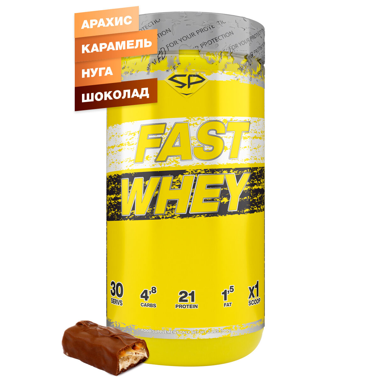 Протеин сывороточный STEELPOWER / Протеиновый коктейль для похудения / Сывороточный протеин FAST WHEY, 900 гр, Арахис Карамель Нуга Шоколад (Сникерс)