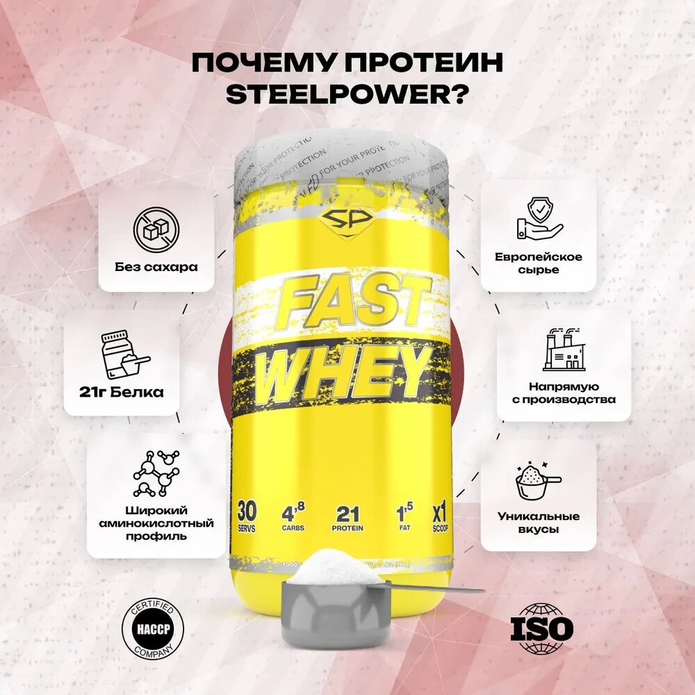 SteelPower Сывороточный протеин FAST WHEY, 900 гр, вкус «Клубника со сливками», STEELPOWER