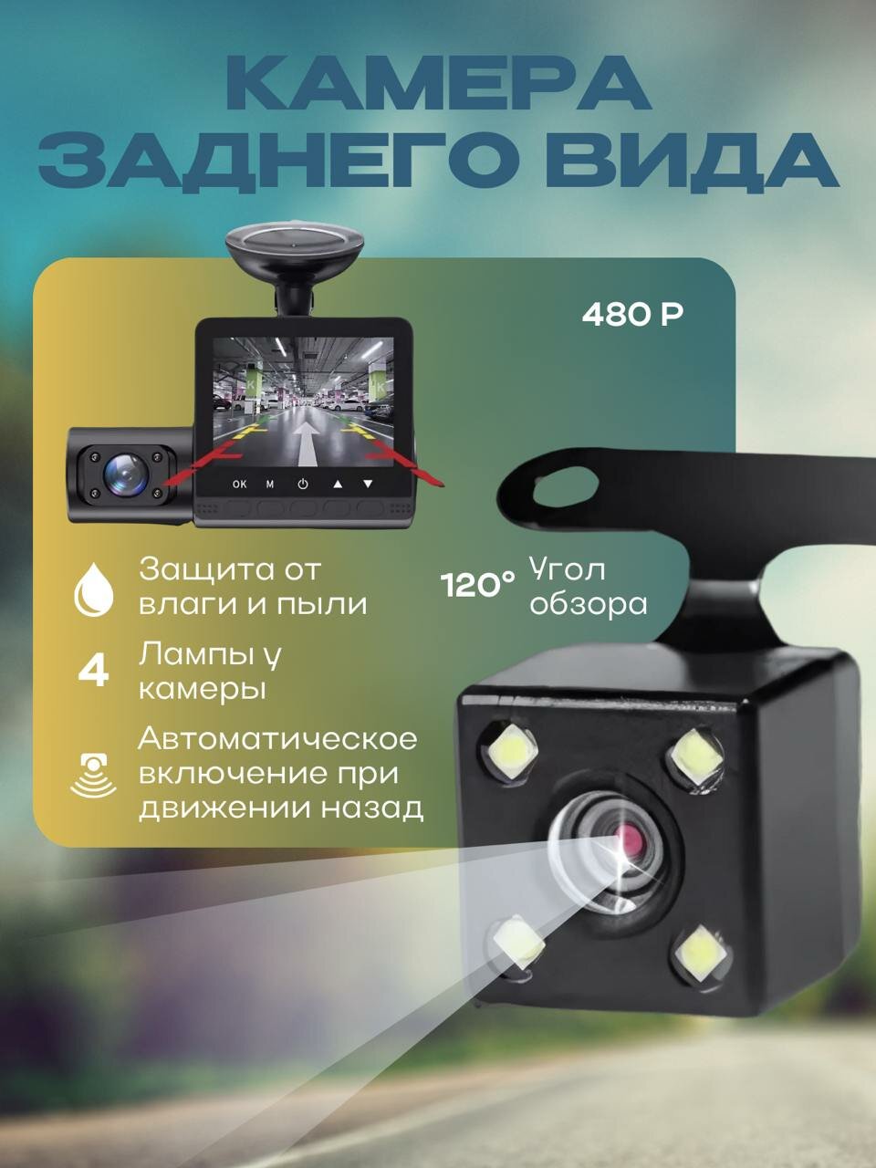 Видеорегистратор автомобильный с 3 камерами с экраном диагональю 2,4" интересное: