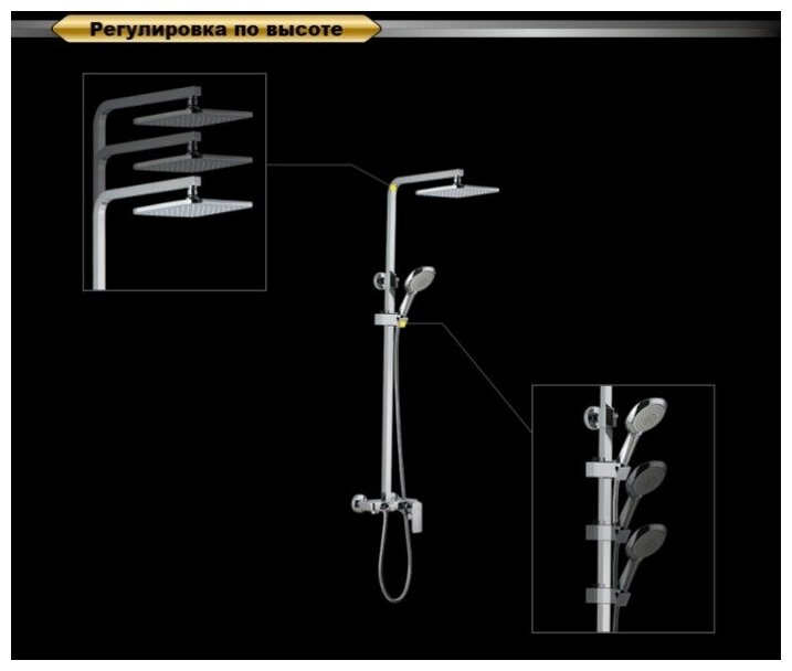 | Дополнительная информация | высота стойки для душа: 1250 мм; диаметр душевой лейки: 115 мм; длина верхнего душа: 220 мм; ширина верхнего душа: 220 мм |