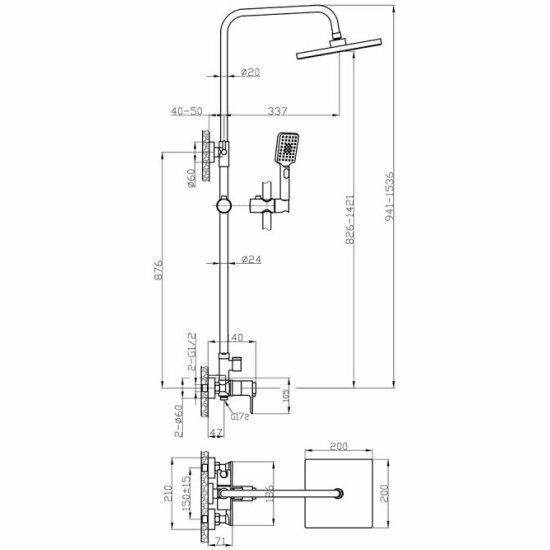 | Управление смесителем | рычажное / термостат |