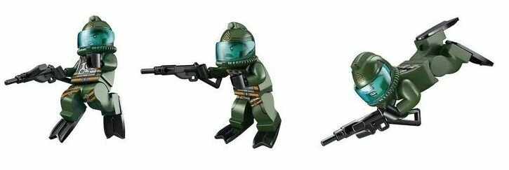 | Плюсы: | Аналог Лего, военная тематика, отсутствующая у Лего. Аквалангисты |