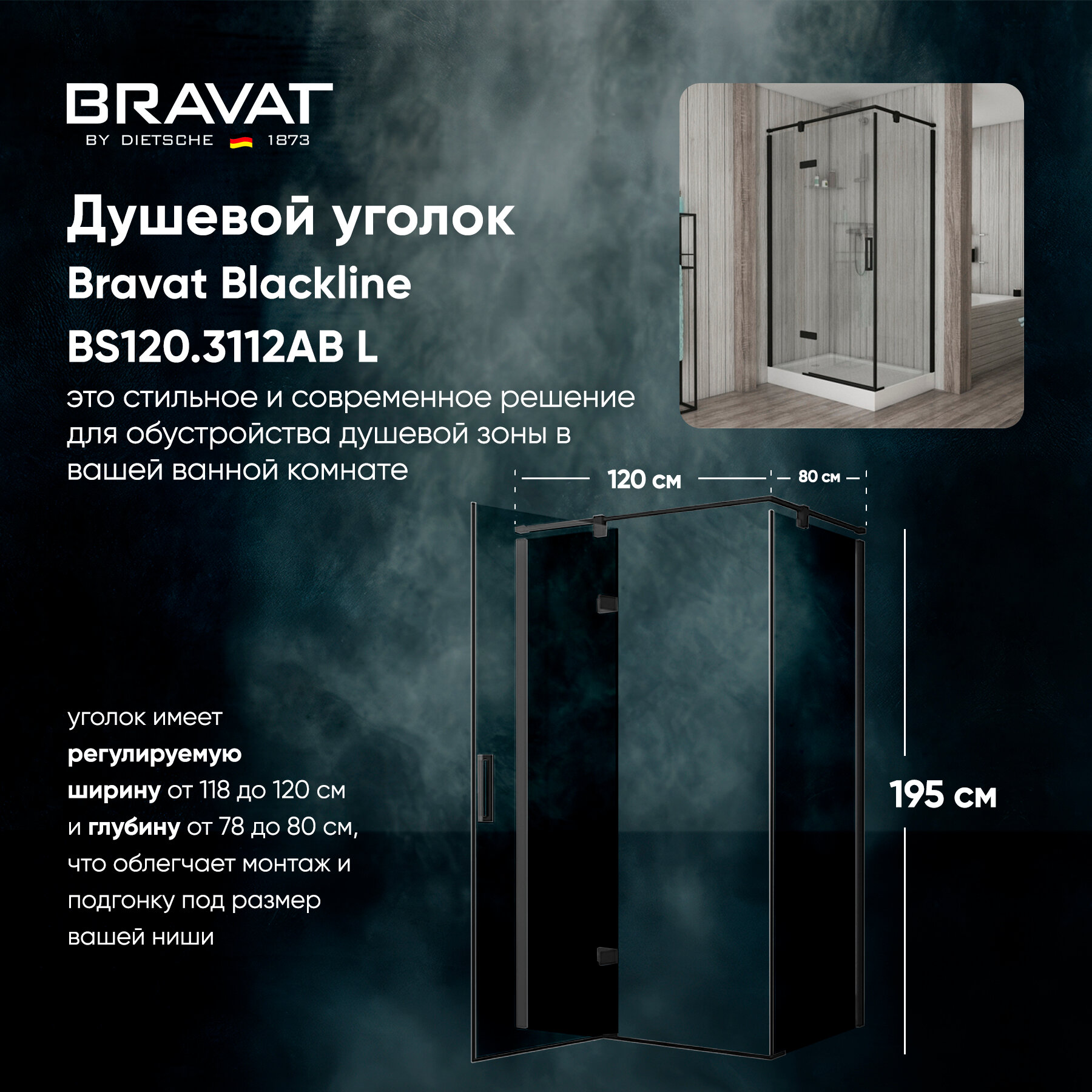 Душевой уголок Bravat Blackline BS120.3112AB L интересное: