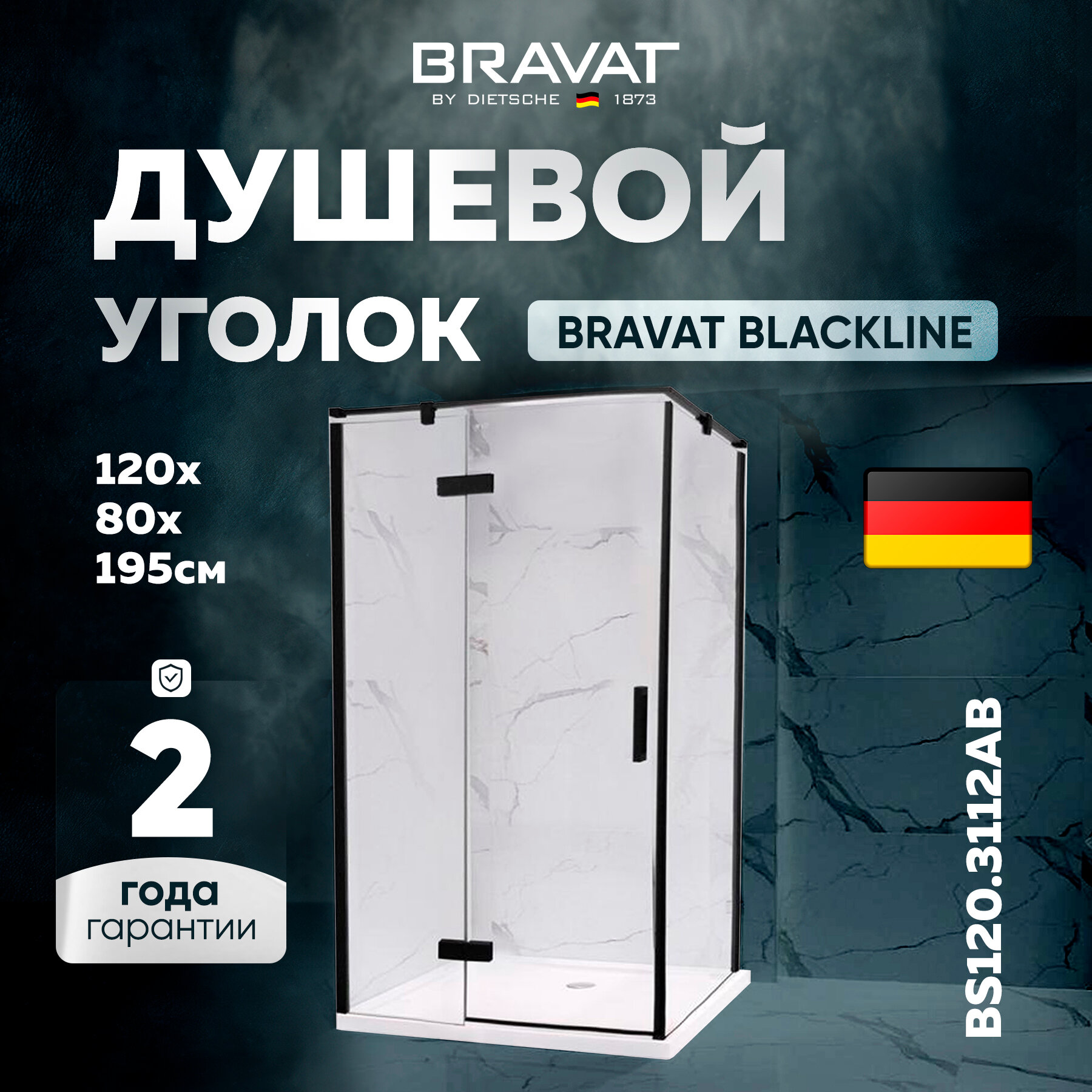 Душевой уголок BRAVAT BLACKLINE L-open BS120.3112AB