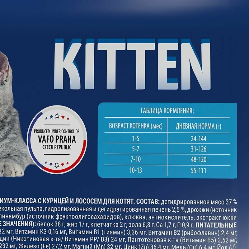 | Отзыв: | Моя кошечка сразу начала кушать этот корм. Ей скоро годик поэтому буду переводить на корм для взрослых этой же фирмы. Состав хороший |