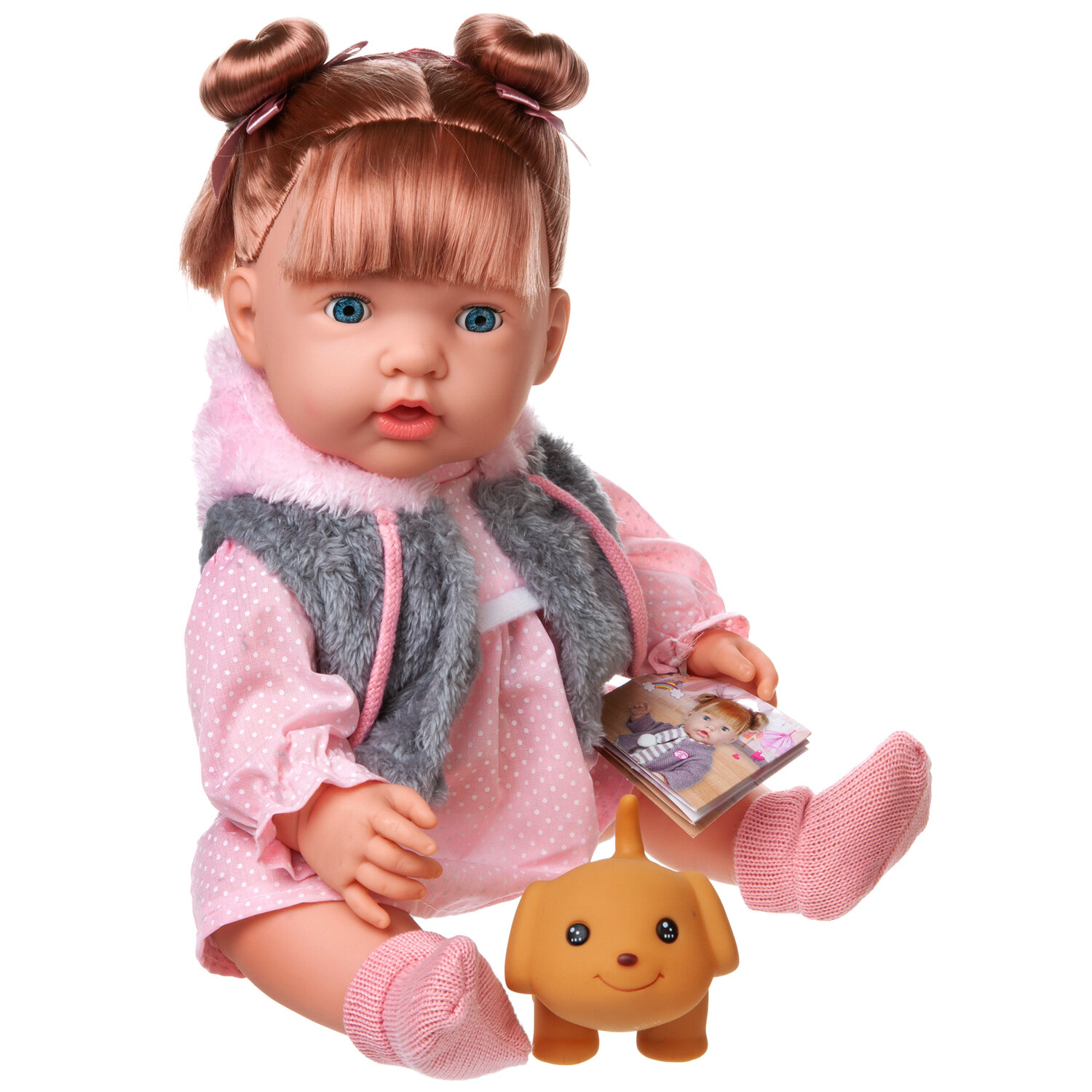 | Комплектация | пупс-девочка, бутылочка, любимая игрушка "Собачка", конфетка на палочке |