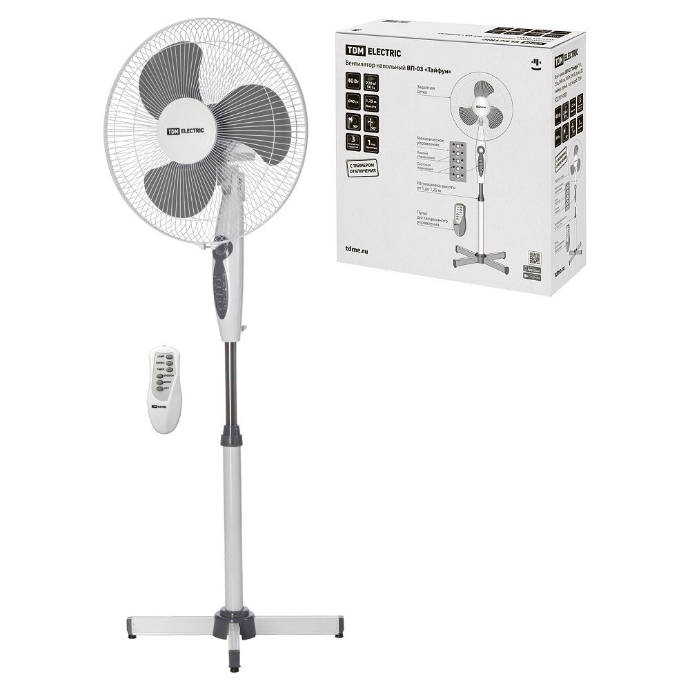 Вентилятор напол, ВП-03 Тайфун H1,25 м, D40 см, 40 Вт, 230 В, пульт ДУ, таймер, серый, 1 шт/короб, TDM SQ2701-0007
