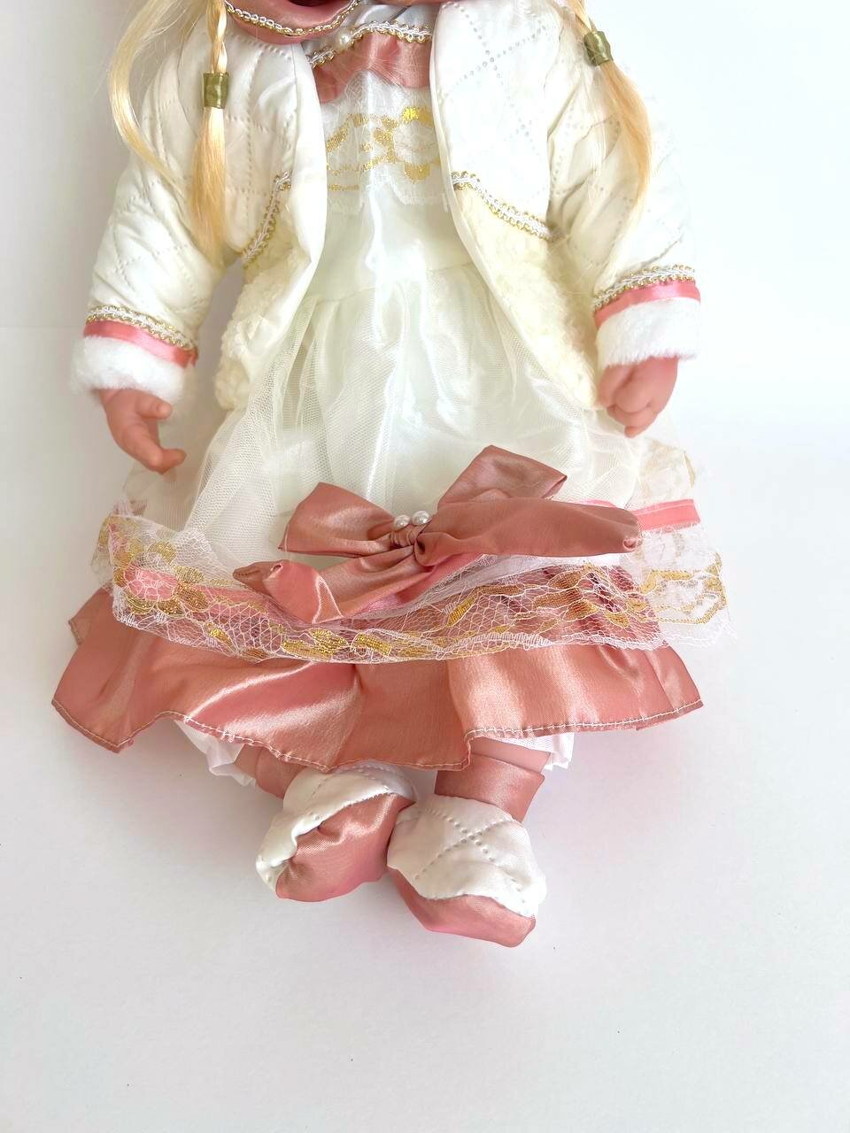 Большая кукла 60 см в бежевой кружевной курточке, интерактивная в подарочной упаковке, в свитере, говорит