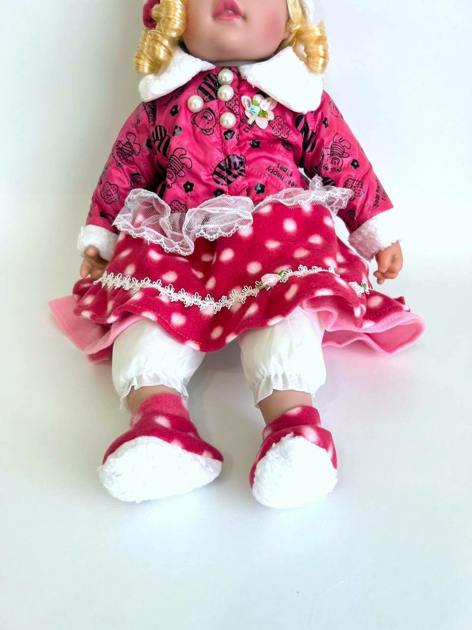 Большая кукла 60 см в курточке и шапочке, интерактивная в подарочной упаковке, в малиновом платье, говорит