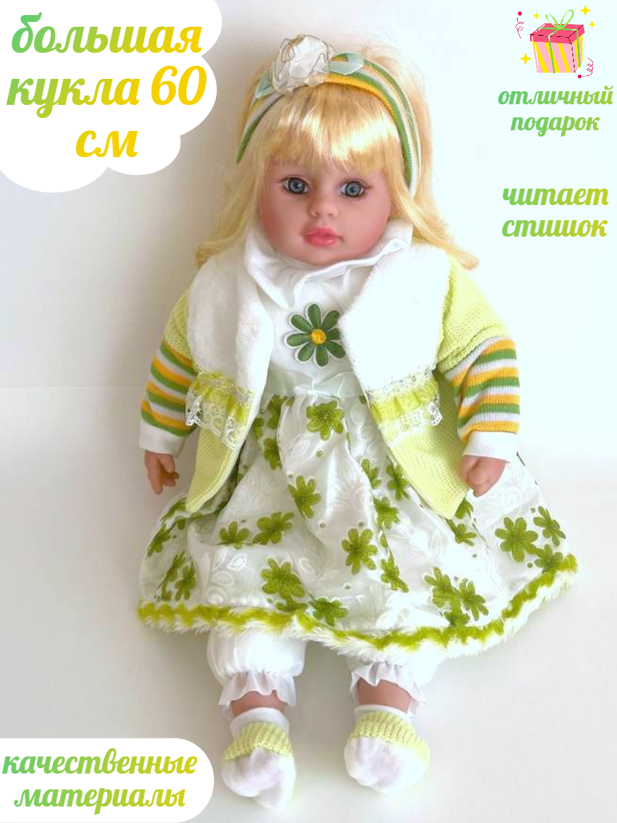 Большая кукла 60 см в зеленом кружевном платье, интерактивная в подарочной упаковке, в свитере, говорит