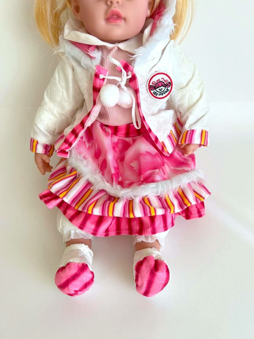 Большая кукла 60 см в розовой курточке, интерактивная в подарочной упаковке, в платье, говорит