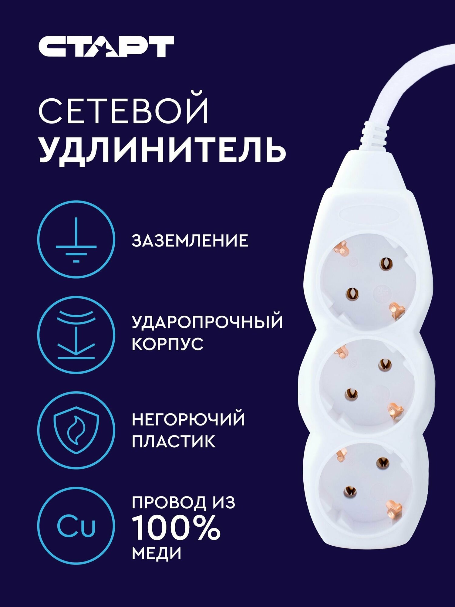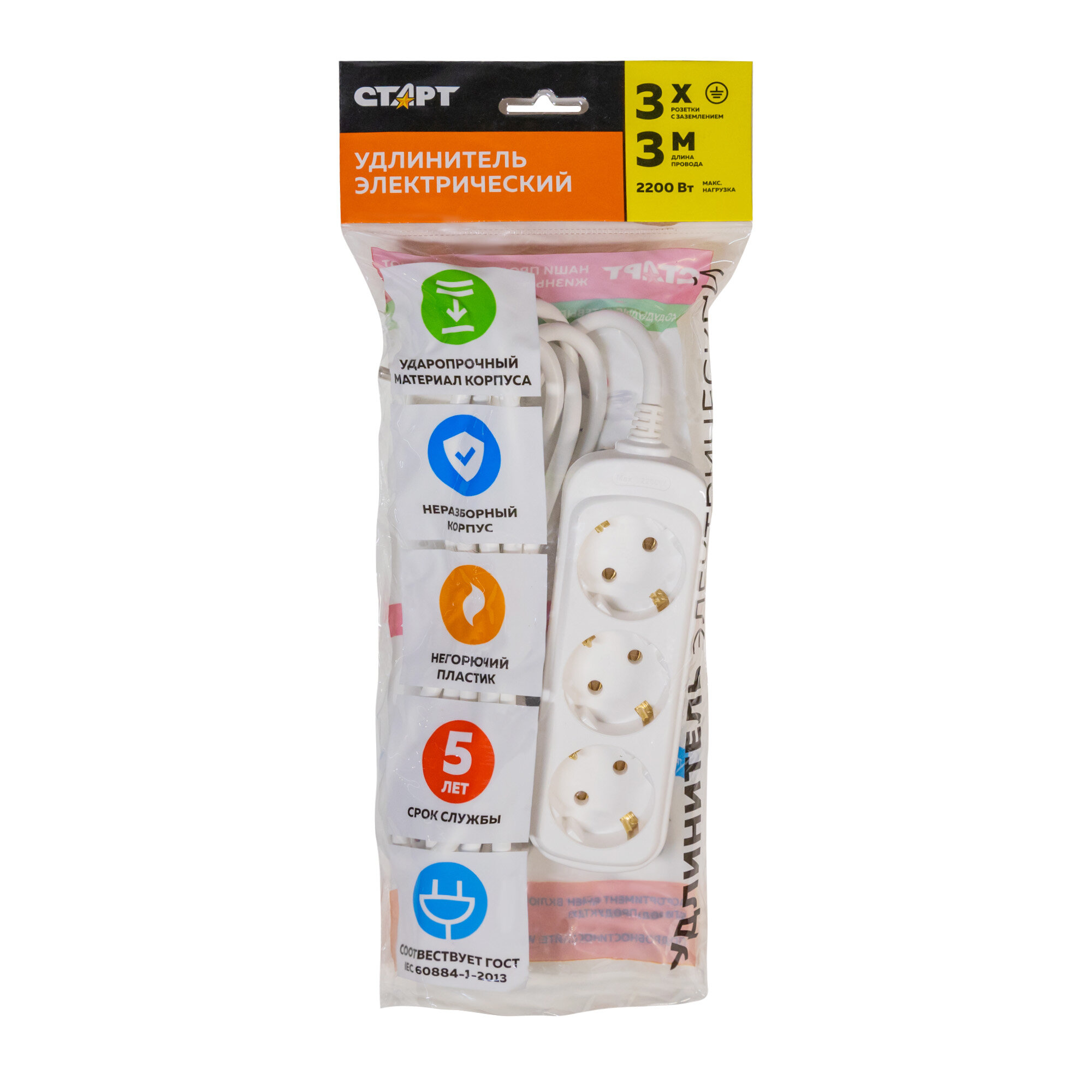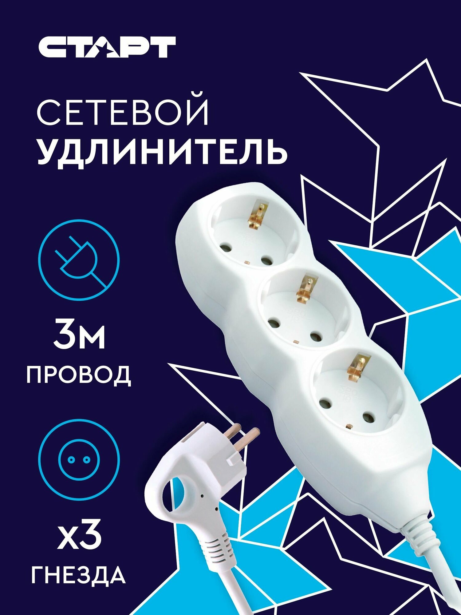 Сетевой удлинитель Старт Электрический, 3 розетки, 3 м