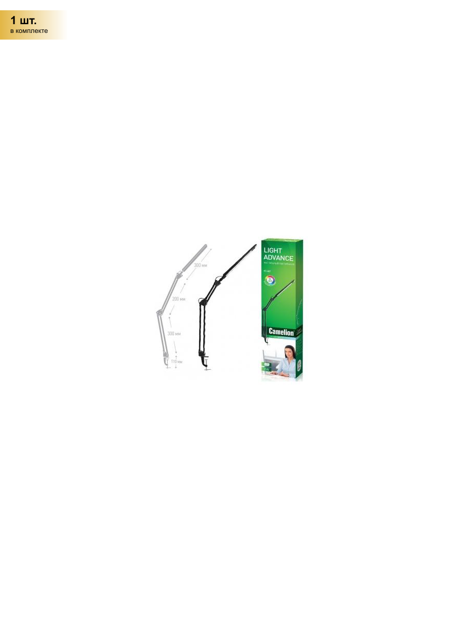 Camelion KD-821 C02 черный LED (Св-к наст.,8 Вт, 230В, 2 ур.ярк,350лм, струбцина)