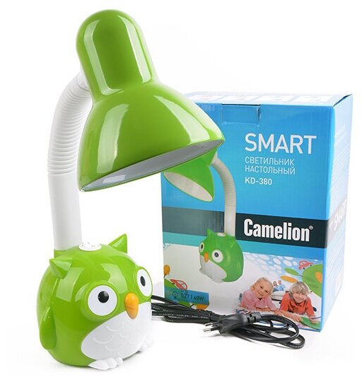 Купить Camelion KD-380 C05 светильник настольный 40W E27 Сова зеленая, металл/пластик, шнур 1,5м (арт. 602114)