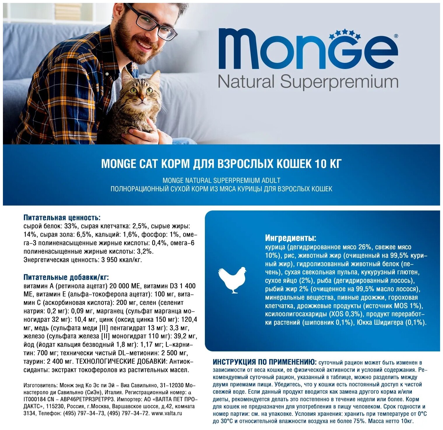 Monge Cat сухой корм для взрослых кошек с курицей - 10 кг интересное: