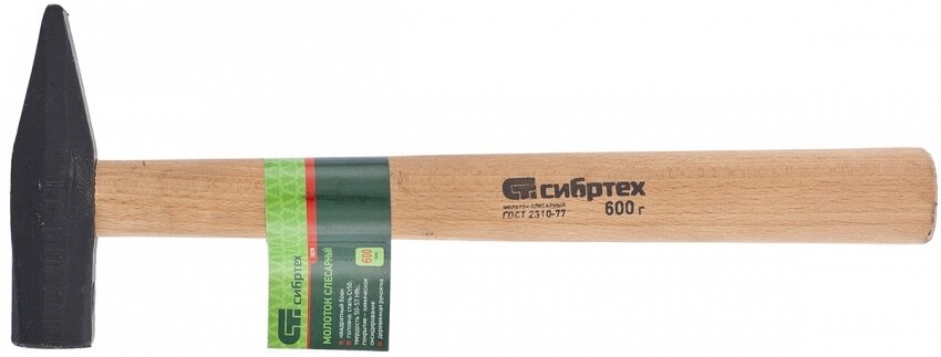 Сибртех 10219 Молоток слесарный, 600 г, квадратный боек, деревянная рукоятка .
