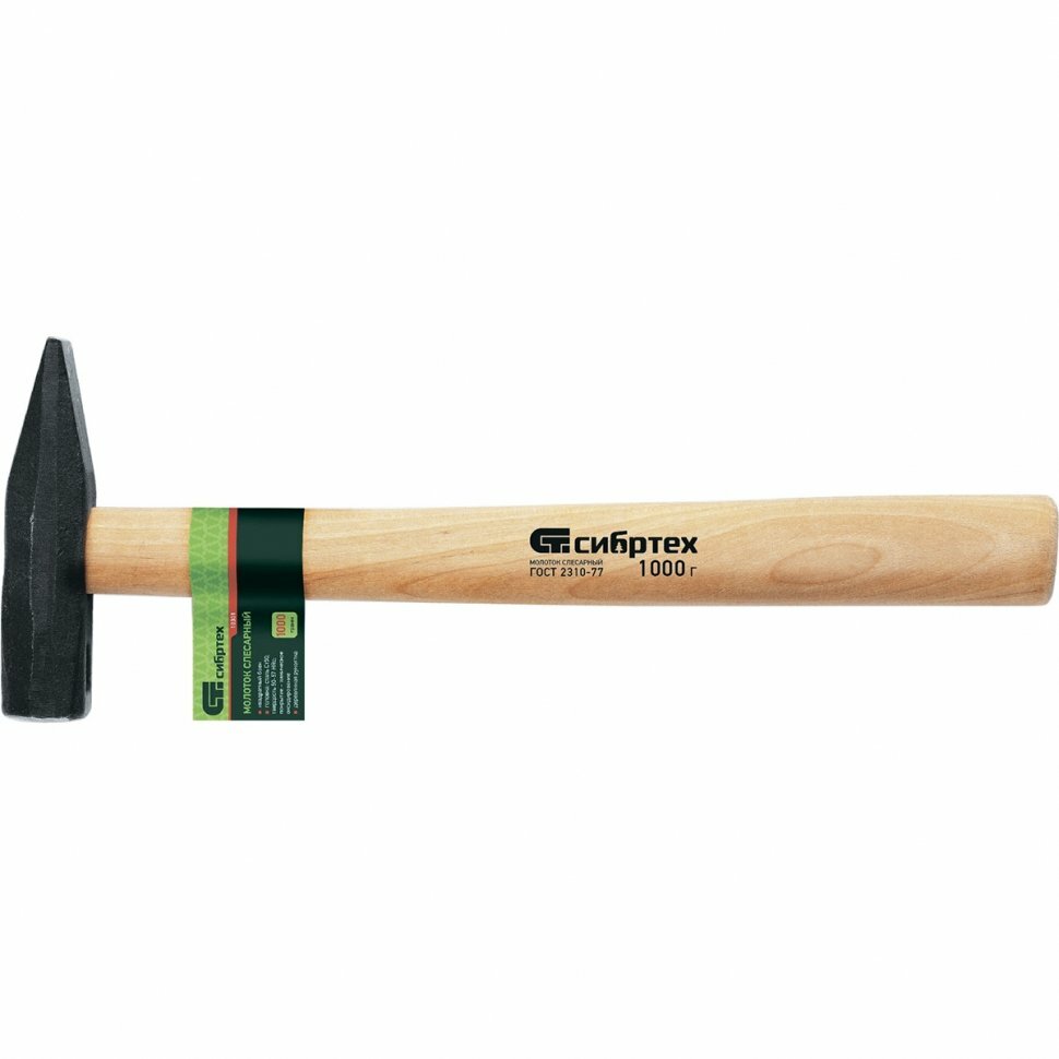 Молоток слесарный 600 г, квадратный боек, деревянная рукоятка Сибртех (10219)