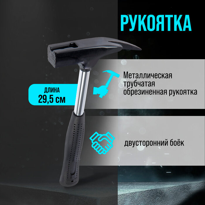 Молоток кровельщика, металлическая трубчатая обрезиненная рукоятка, 600 г