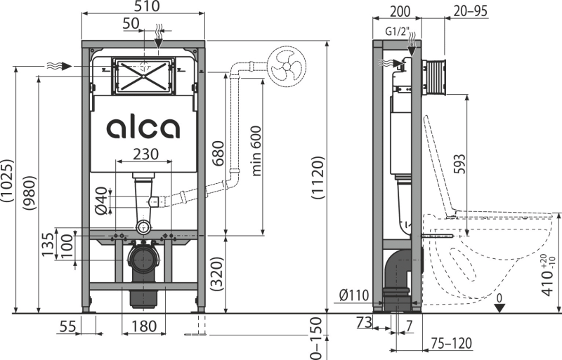Alcaplast Инсталляционная система для подвесных унитазов отдельностоящая AM116/1120 SOLOMODUL ALCAPLAST