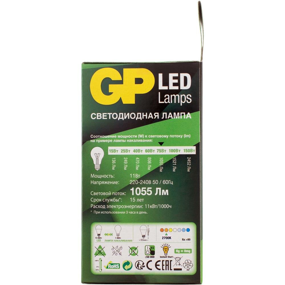 GP светодиодная лампа в колбе груша LEDA60-11WE27-27K-2CRB1