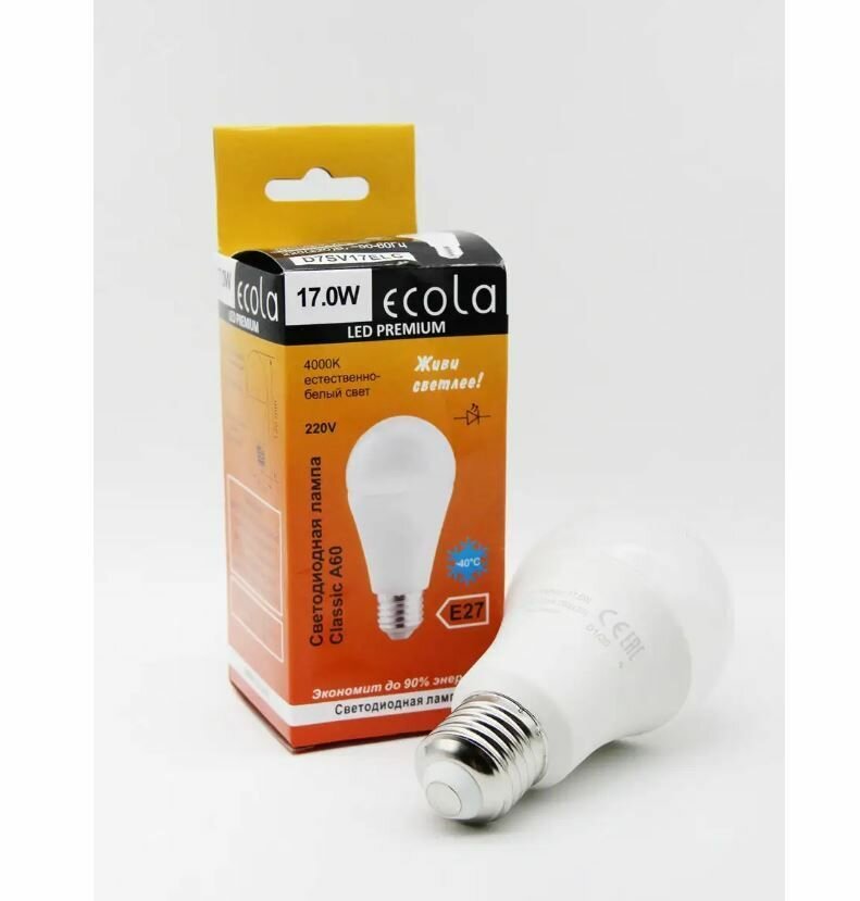 Лампа светодиодная ECOLA D7SV17ELC CLASSIC LED PREMIUM 17,0W A60 220-240V E27 4000K (композит) 115X60 интересное:
