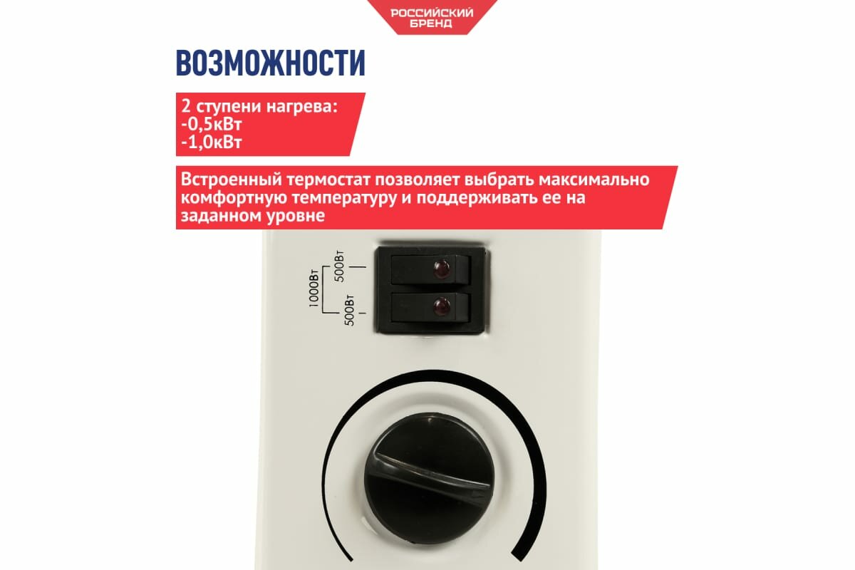 Конвекторный обогреватель, 500/1000 Вт СОЮЗ КОС-1000С