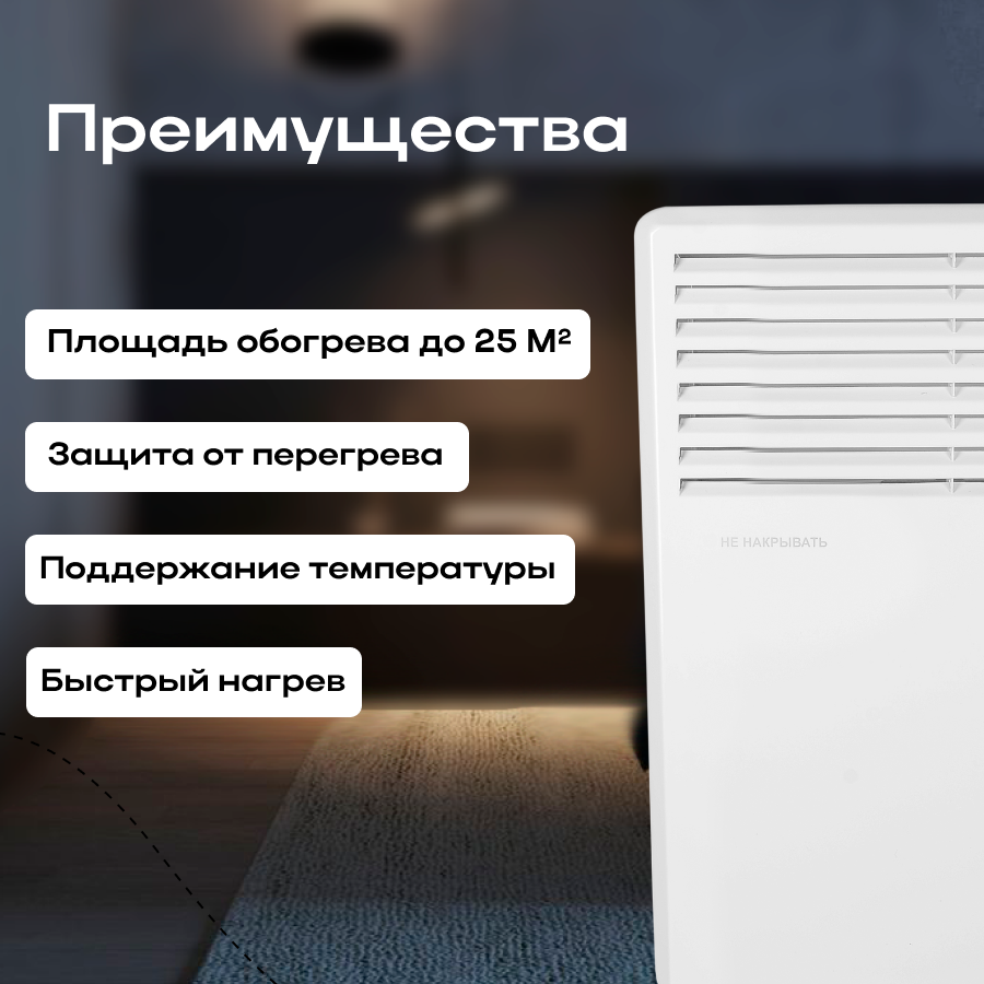 | Плюсы: | Быстро нагревает комнату |