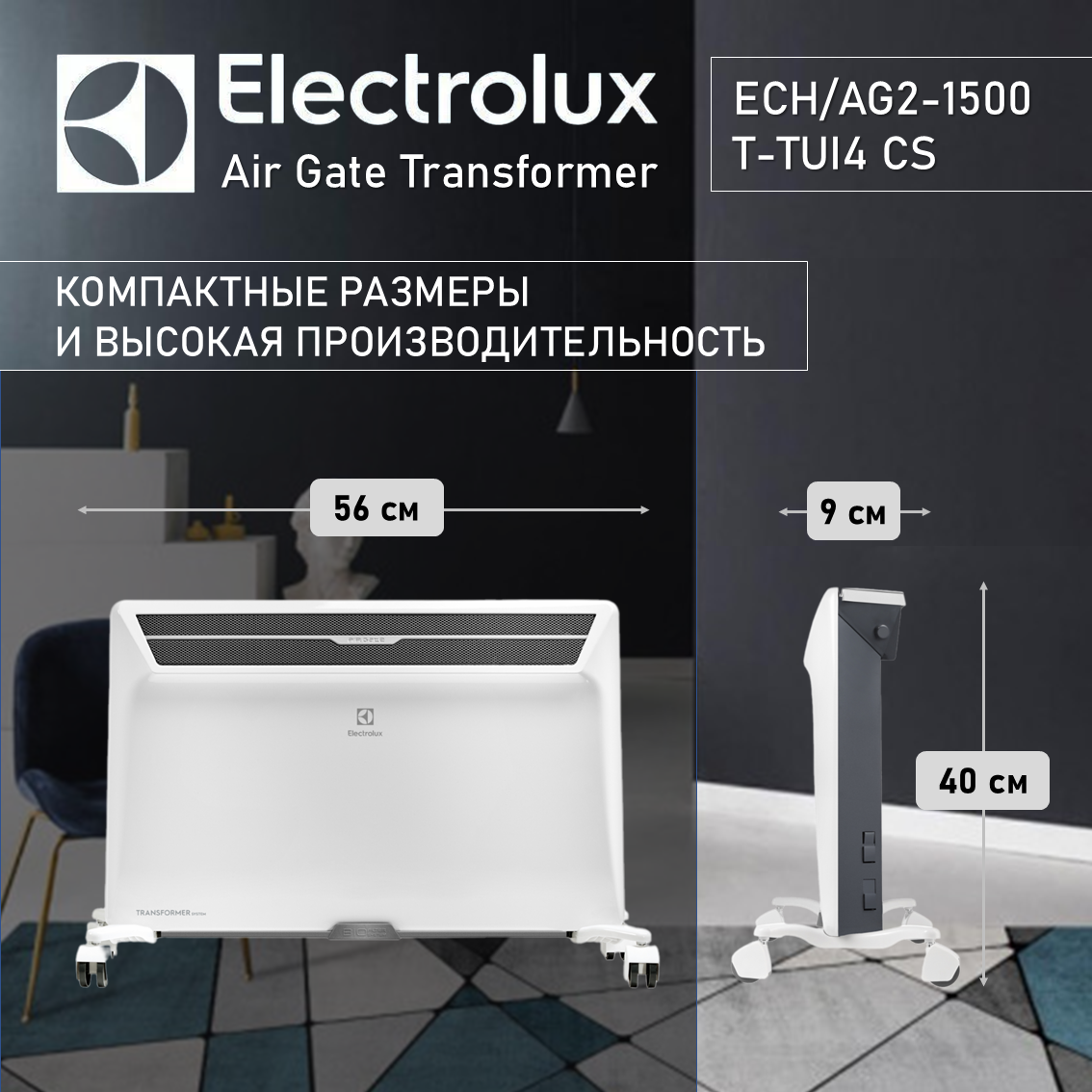 СохранитьИнверторный конвектор Electrolux ECH/AG2-1500 T-TUI4 CS Air Gate Transformer с Wi-Fi и ножками интересное: