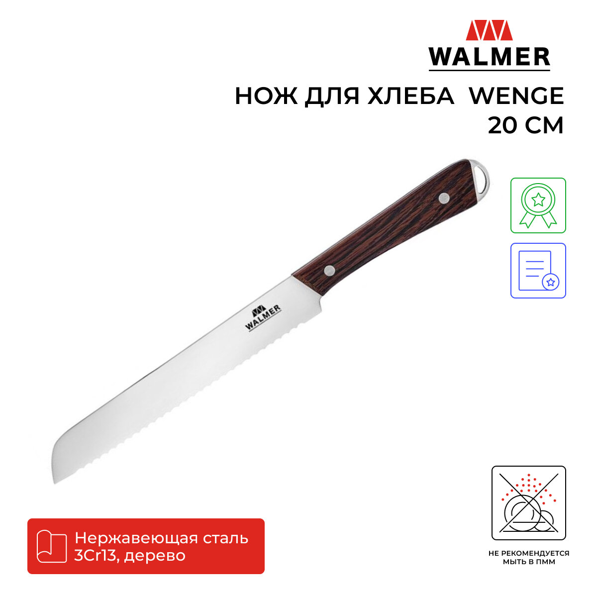 Нож для хлеба Walmer Wenge 20 см, цвет темное дерево интересное:
